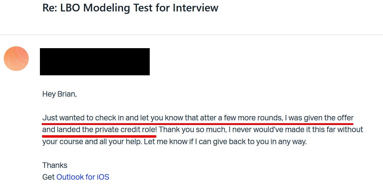 "Just wanted to check in and let you know that atter a few more rounds, I was given the offer and landed the private credit role!"